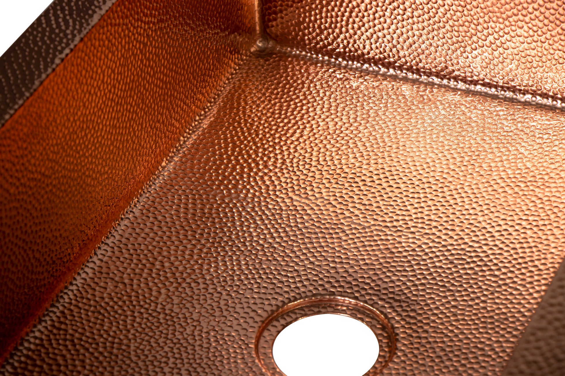 33x22x9″ Drop-in Single Well Plain Hammered Copper Kitchen Sink with Shiny Finish. Upgrade your kitchen with our stunning 33x22x9″ Drop-in Single Well Plain Hammered Copper Kitchen Sink. Handcrafted by skilled Mexican artisans using certified pure copper (99% copper, 1% zinc, lead-free), this sink delivers both beauty and functionality. The shiny finish highlights the natural elegance of hammered copper, adding a timeless look to your kitchen. It features a 2″ flat lip and a 3.5″ drain opening (drain not included). Perfect for kitchen sinks, copper bar sinks, or wet bar sinks, this versatile piece can be installed as a drop-in or undermount sink, making it the perfect fit for your kitchen decor. Enhance your home with this unique and durable sink.